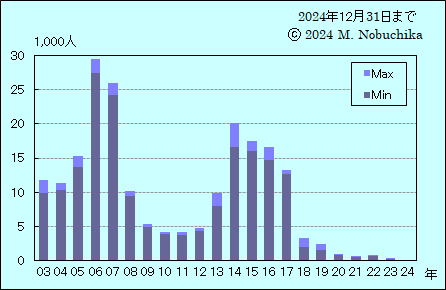 IBC集計の死者総数と各年の死者数は注釈をご覧ください
